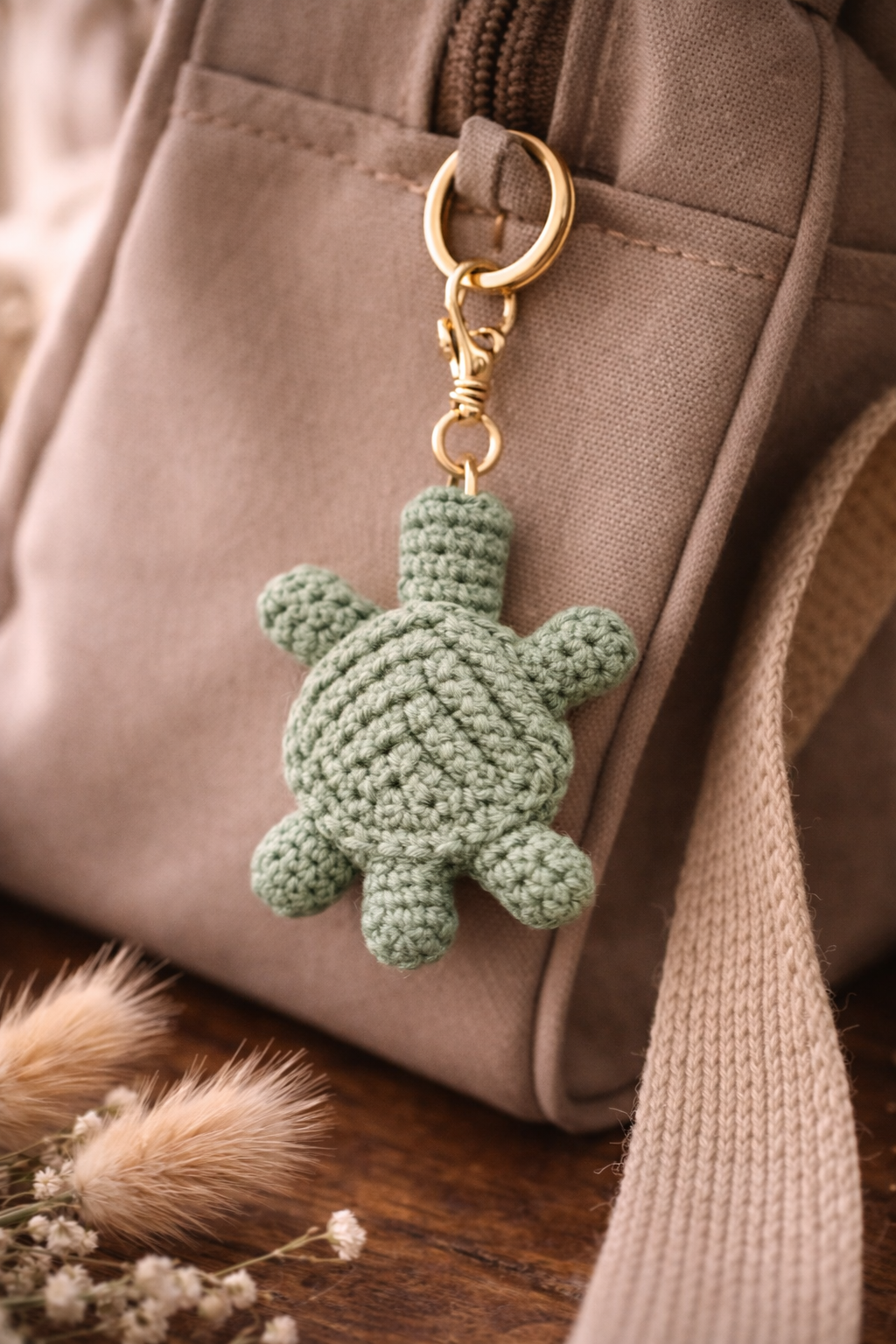 Add a charming handmade touch to your keys or bag with this macrame turtle keychain, carefully crafted using premium cotton cord. Its adorable turtle design makes it a perfect accessory for everyday use or a thoughtful handmade gift.