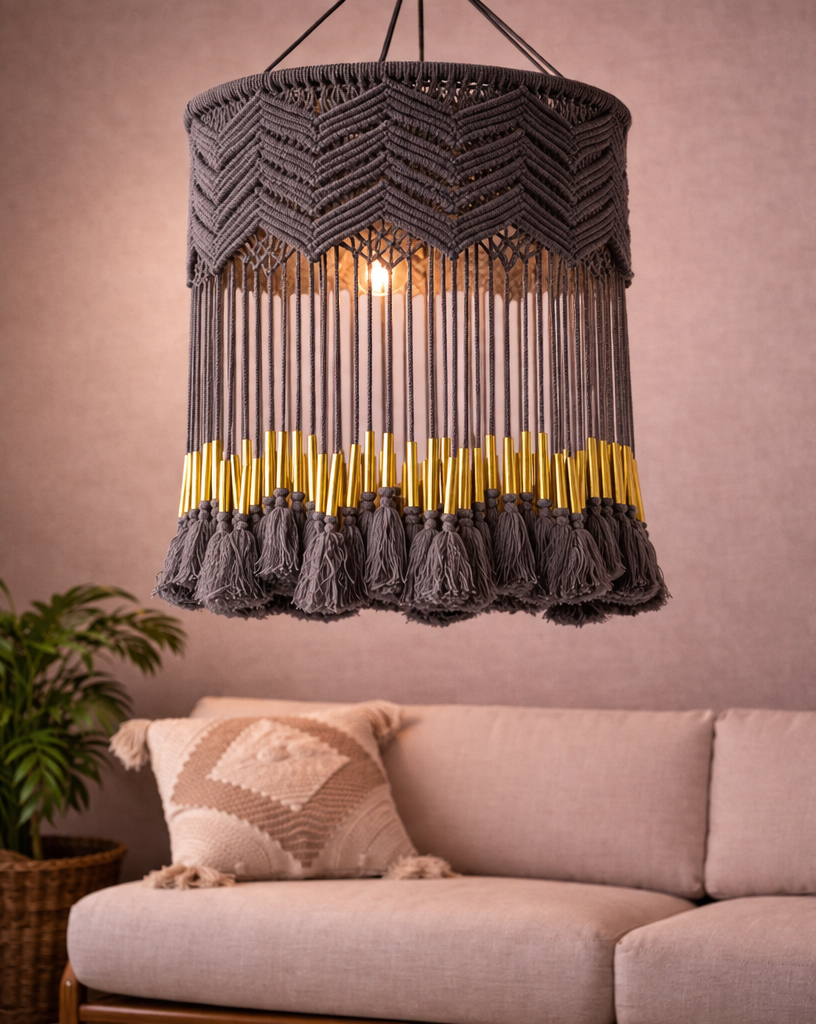 Add texture, warmth, and artisanal charm to your home with this beautifully designed Bohemian Ceiling Light Fixture. Crafted with precision, this bohemian ceiling light fixture features detailed knot patterns and elegant tassel finishes that create a soft, inviting ambiance.