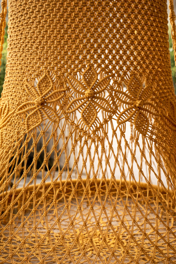 The beauty of a macrame hanging swing chair comes from traditional macramé techniques, a decorative knotting art that has been popular for centuries.