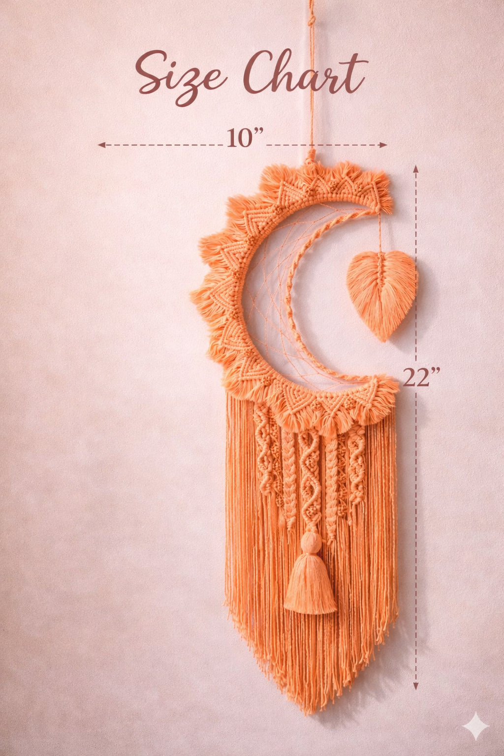 The soothing combination of peach tones and off white detailing creates a calming and cozy vibe—ideal for bedrooms, living rooms, nurseries, or meditation corners. The crescent moon design symbolizes peace, positivity, and protection, making it both decorative and meaningful.