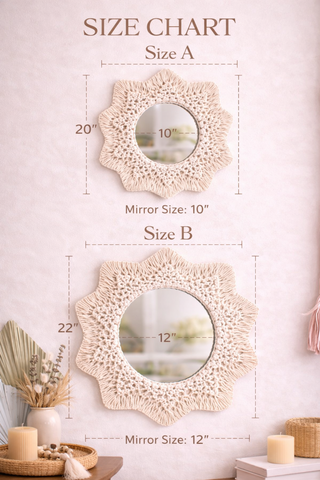 Each mirror is carefully handcrafted using high-quality cotton rope, featuring intricate knot detailing and a beautiful woven frame that enhances its artisanal charm.